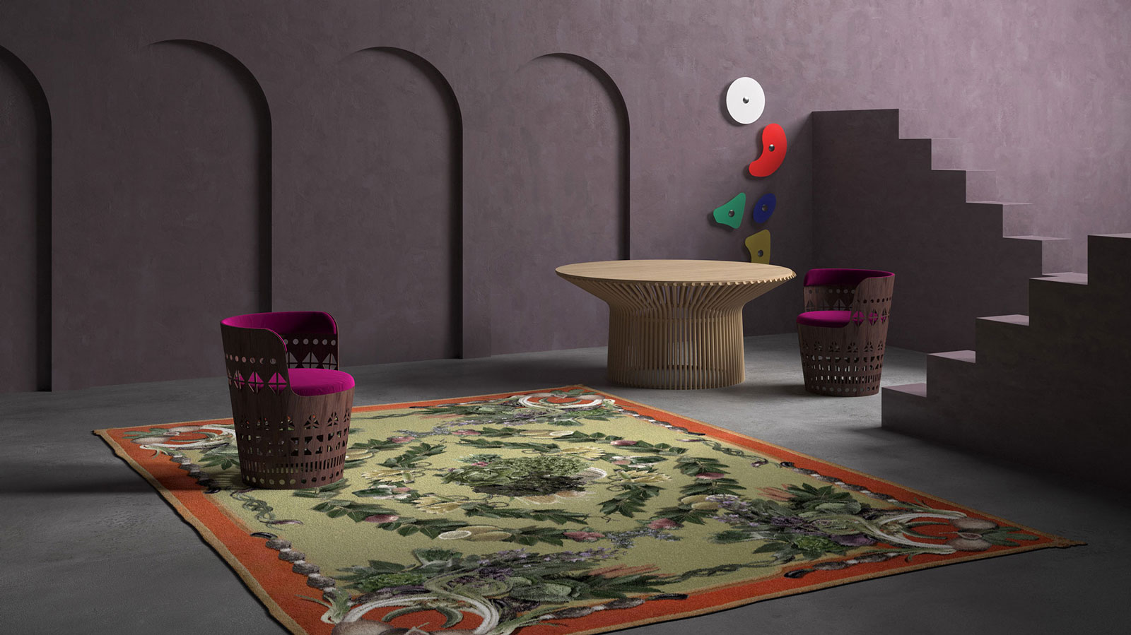 Die vier Themen, aus denen sich diese Kollektion zusammensetzt, könnten als eine traumhafte Collage definiert werden, in der sich Erinnerungen, Bilder und Farben vermischen. Jeder Teppich ist eine Geschichte, die aus Details besteht, die uns in eine metaphysische Welt entführen, in der Realität und Traum zu einem vielfarbigen New-Age-Märchen werden, das romantisch und melancholisch ist. Eine poetische Kollektion, außerdem eine persönliche Lektüre, die jedes Mal eine neue Geschichte suggeriert, die es uns überlassen bleibt, sie zu entdecken.