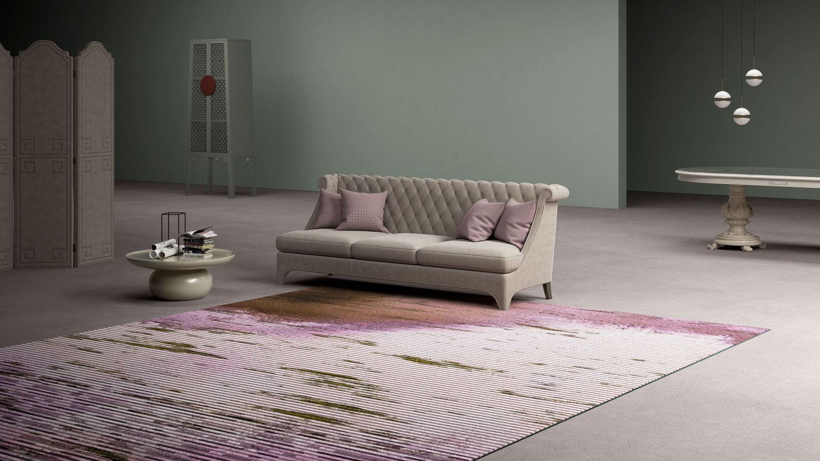Geometrische Muster und erdige Töne sind die Hauptelemente dieser Kollektion, die jedem Raum ein Gefühl von Kultiviertheit verleiht.