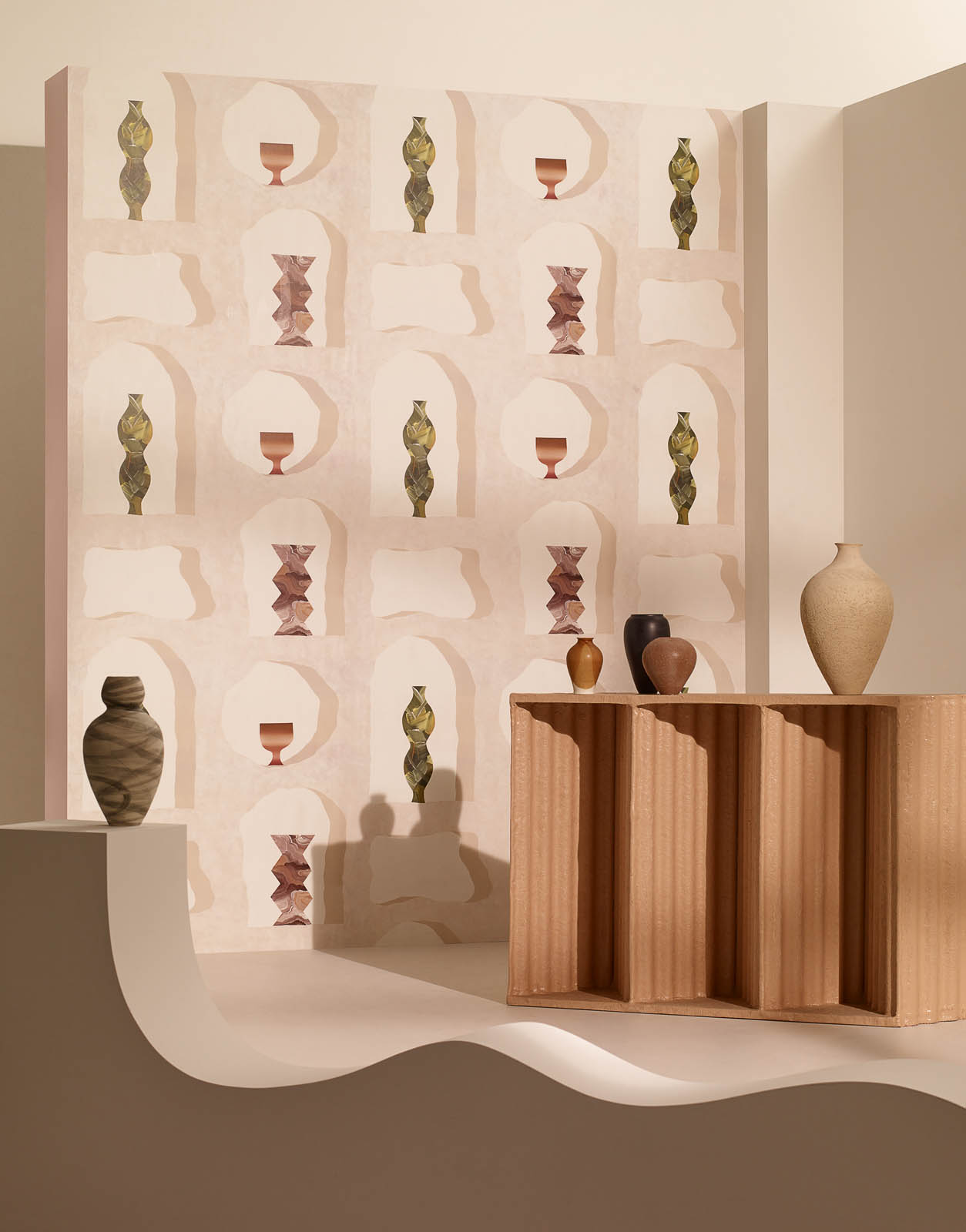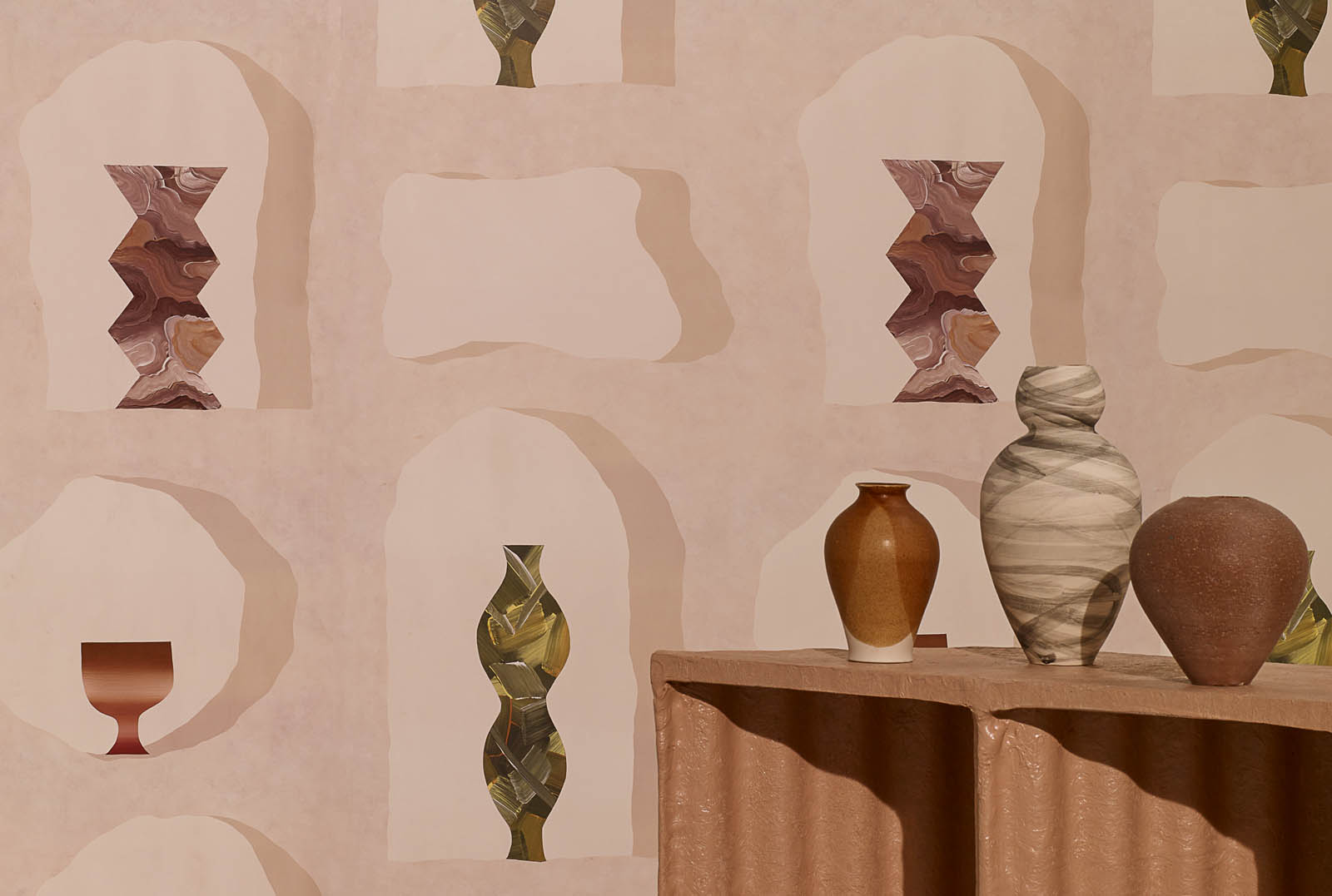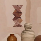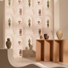 Beschreibung: Geometrische Muster auf Vliesstoff.