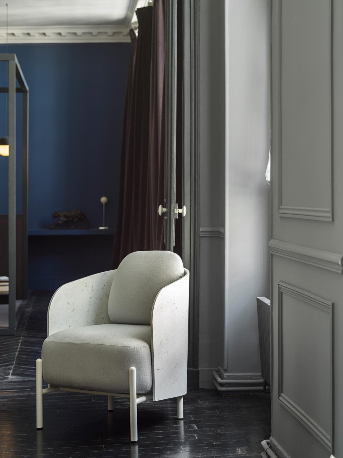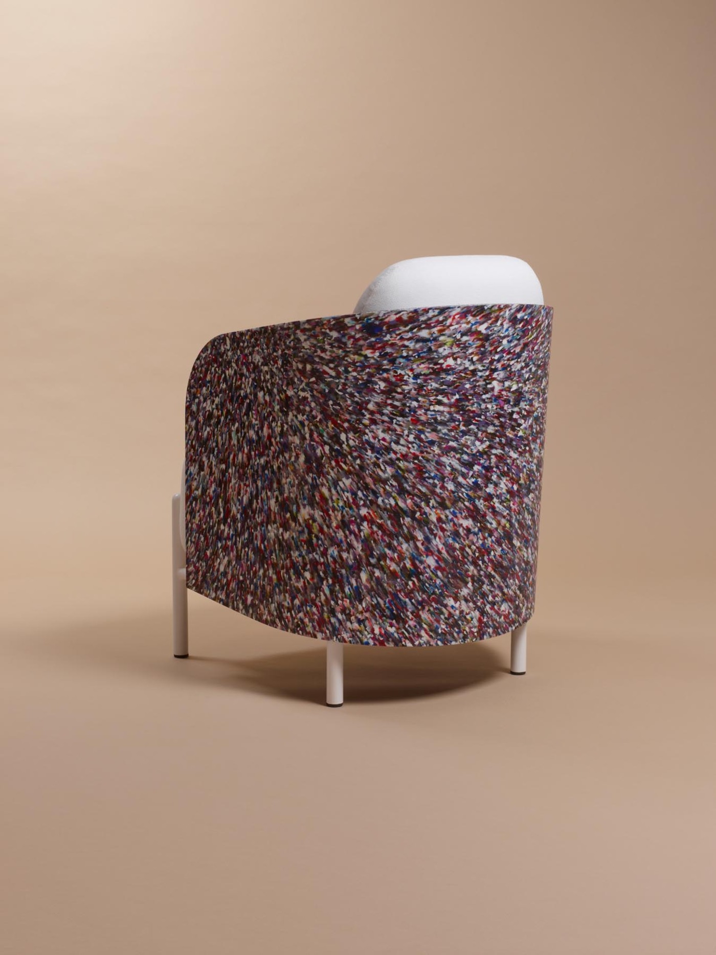 „Der Art-Sessel soll ein wenig bekanntes handwerkliches Material aufwerten, das aus dem Recycling von Kunststoffen aus verschiedenen Industriezweigen stammt: Verpackungen, Lebensmittelverarbeitung. Die dicke Sitzfläche lädt zum Hinsetzen ein, und wir lassen uns von diesem erstaunlichen Panzer umhüllen. Für die einen ist es ein Kunstwerk, für die anderen ist es diskret und elegant. Dieses Material wirft Fragen auf und lässt niemanden gleichgültig, wie dieser Sessel.