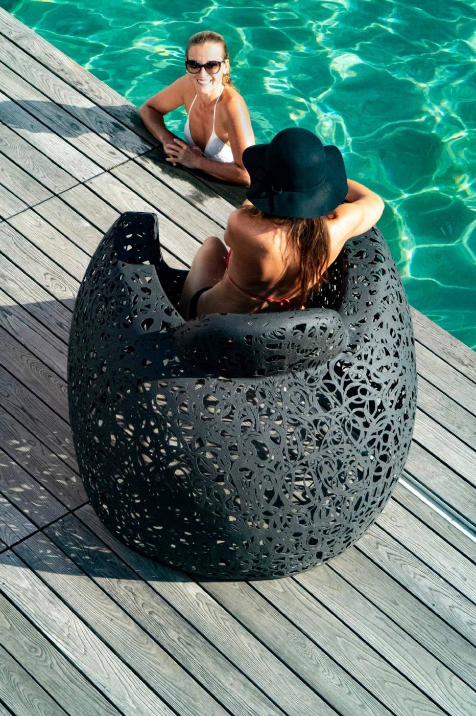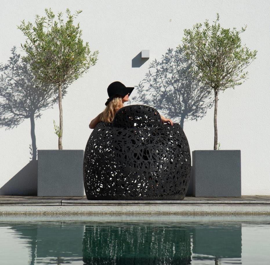 Verwenden SieDer handgefertigte Stuhl Stellar ist ein charakteristisches und mutiges Luxusmöbelstück.Er ist sehr bequem und kann mit dem Race Table kombiniert werden.Der Race Table eignet sich hervorragend für den ganzjährigen Gebrauch im Freien.EigenschaftenDer Stuhl Stellar wiegt ca. 19 kg. Lava soll dreimal so stark sein wie Stahl.Die Möbel sind UV-, Salz- und chlorbeständig und eignen sich daher, um aggressiven Umgebungen wie Whirlpools und Schwimmbädern standzuhalten.Die Möbel kapseln die Wärme ein, weshalb sie – trotz ihrer schwarzen Farbe – in der Sonne nicht zu heiß werden.MaterialDas Möbel besteht aus vulkanischem Basalt und Kunstharz.Es ist mit Bullet-Liner oberflächenbehandelt; einem Polyestergummi.PflegeDer Race Table ist wartungsfrei. Er kann mit einer Bürste mit langen Borsten und Wasser oder mit einem Hochdruckreiniger gereinigt werden.MaßeH:96 B1:12 T:120 cmCouleurNoirGarantie2 ans