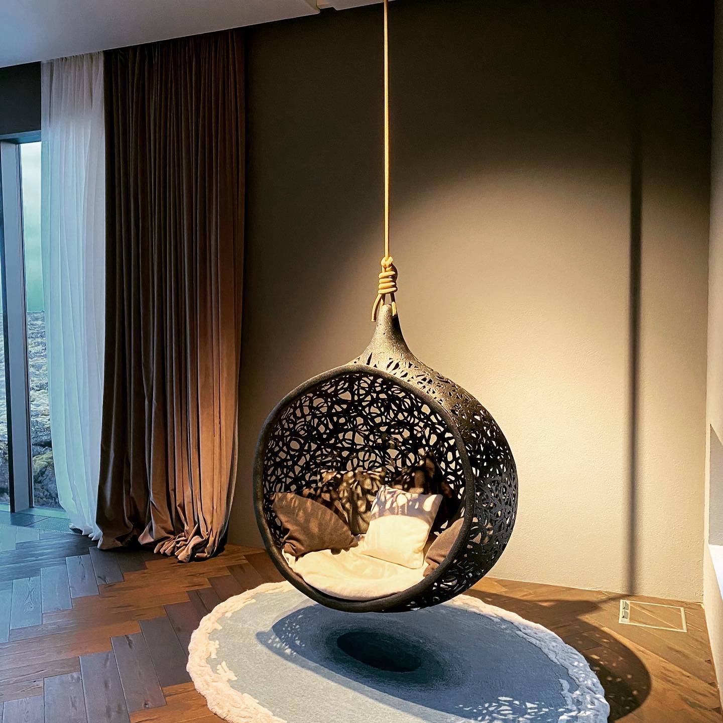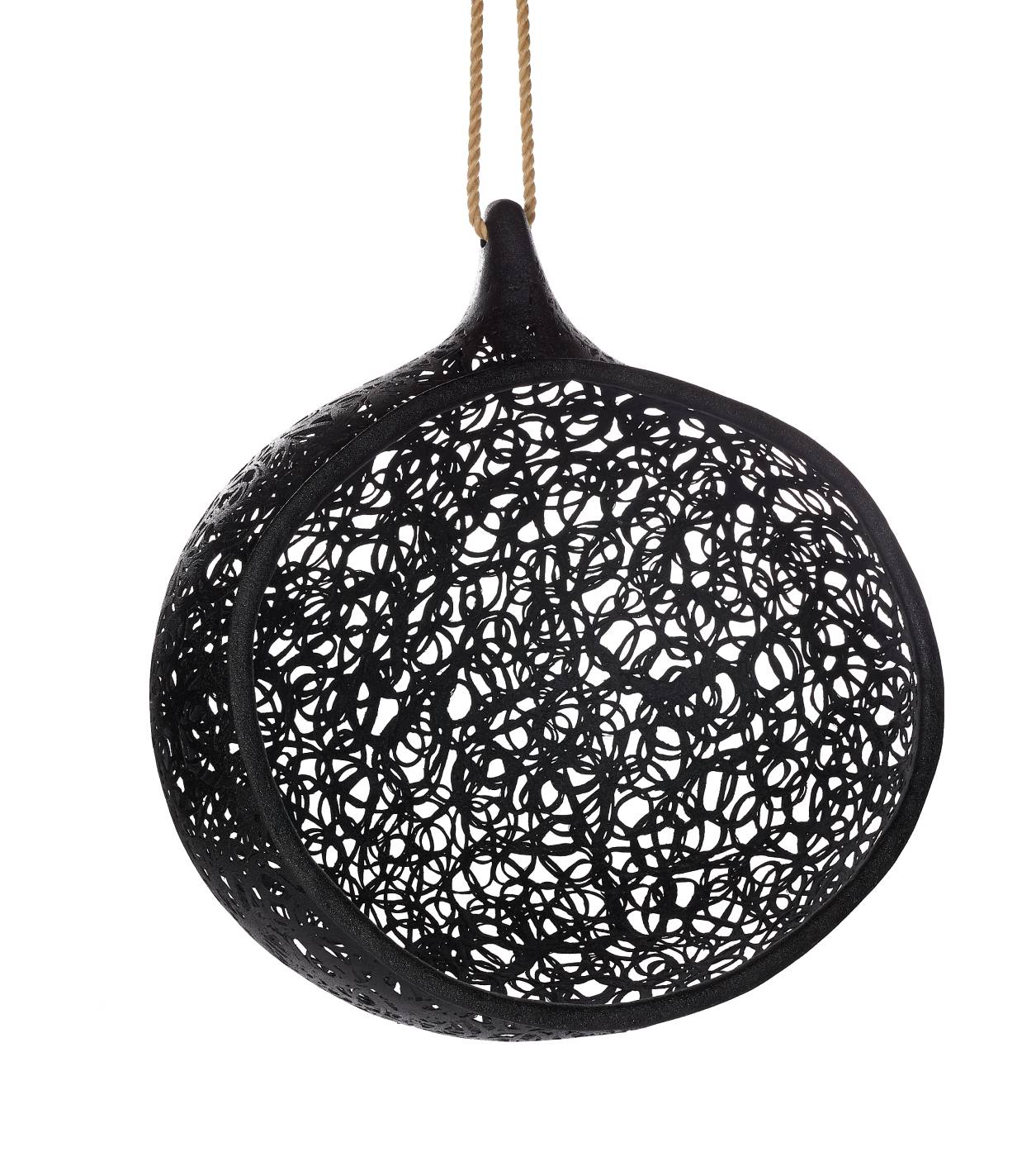 UseThe handmade Bios Mini is designed for 1 person. It can be used both indoors and outdoors. The unit can be hung from a Unknown Nordic S stand, pergola, beam, tree or similar that can support 250 kg. The furniture should not be used as a toy or swing.The Bios Mini is suspended by a rope. Tie the knot so that the furniture hangs at least 30 cm above the base of the support or the ground.PropertiesThe Bios Mini weighs approximately 12 kg. and the payload is 250 kg. Basalt is said to be 3 times stronger than steel.The furniture is UV, salt and chlorine resistant and therefore suitable for aggressive environments such as spas and swimming pools.The furniture encapsulates heat, which is why – despite its black colour – it does not become too hot in the sun.Absorbs sound. A test shows a reduction of 4.4 decibels.MaterialThe furniture is made of volcanic basalt and resin.The surface is treated with Bullet-Liner; a polyester rubber.MaintenanceThe Bios Hide is maintenance-free. It can be cleaned with a long bristle brush and water or with a high pressure cleaner.The Bios Hide can be left outside all year round without a cover as protection.MeasurementsH135 W25 D71 cm, 12 kg.ColourBlackWarranty2 years