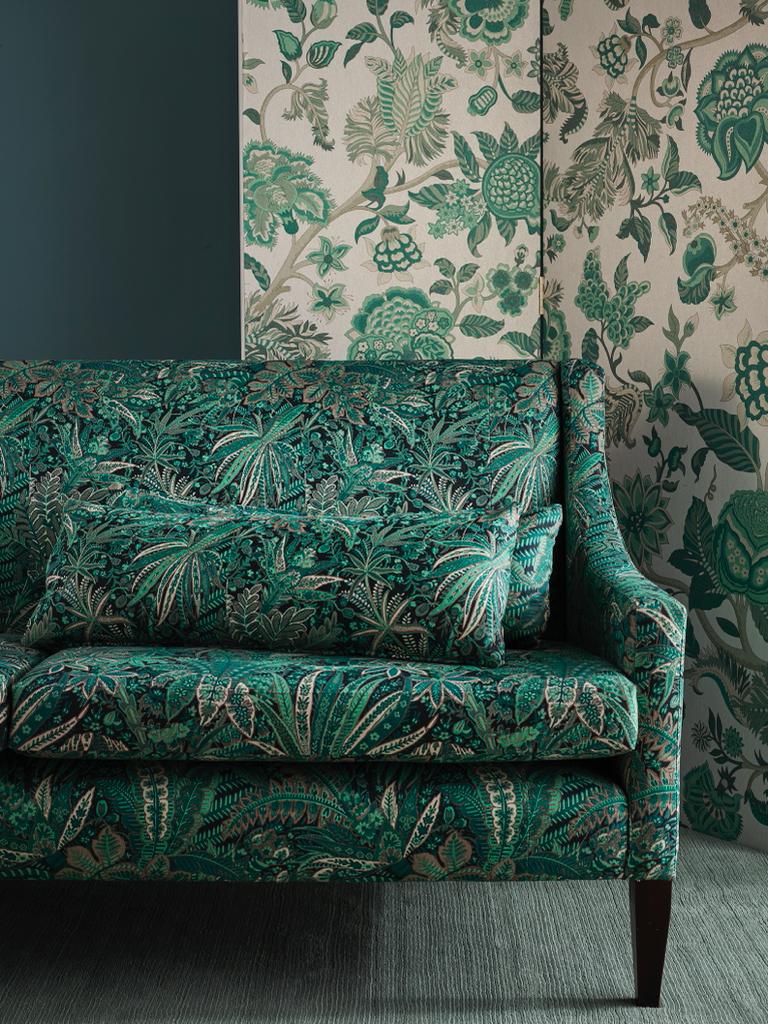 The team took inspiration from the bold colouration of mordant dyes and natural pigments – printed on an iridescent non-woven ground for wallpaper and on linen in flat colour for fabrics, Palampore Trail shines with rich shades reminiscent of these exquisite plant and insect dyes.