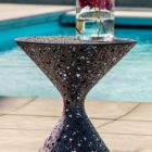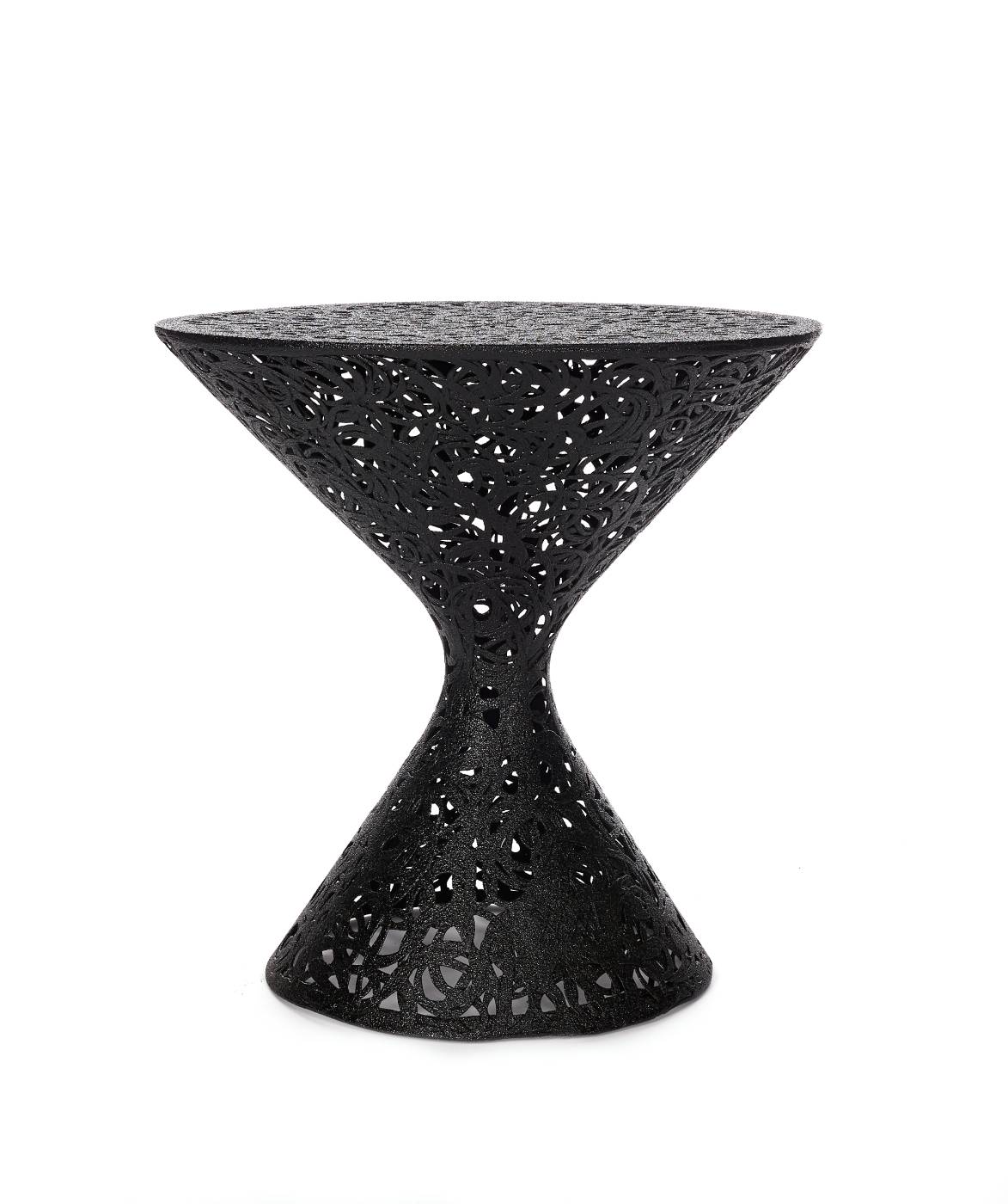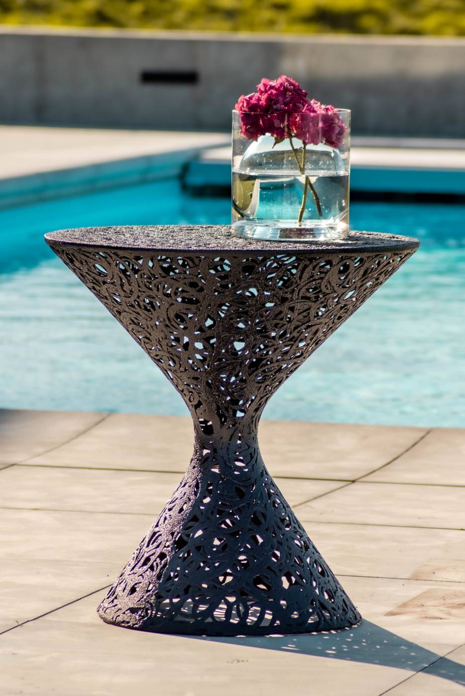 UseThe handmade Race table is an elegant table. It can be combined with all kinds of chairs. The design of the table looks like an hourglass.The Race Table is perfectly suited for year-round outdoor use.PropertiesThe Race Table weighs approximately 7 kg. Lava is said to be 3 times stronger than steel.The furniture is UV, salt and chlorine resistant and therefore suitable for use in aggressive environments such as spas and swimming pools.The furniture encapsulates heat, which is why – despite its black colour – it does not become too hot in the sun.MaterialThe furniture is made of volcanic basalt and resin.The surface is treated with Bullet-Liner, a polyester rubber.MaintenanceThe Race Table is maintenance-free. It can be cleaned with a long bristle brush and water or with a high pressure cleaner.MeasuresD:68 H:71 cmColourBlackWarranty2 years