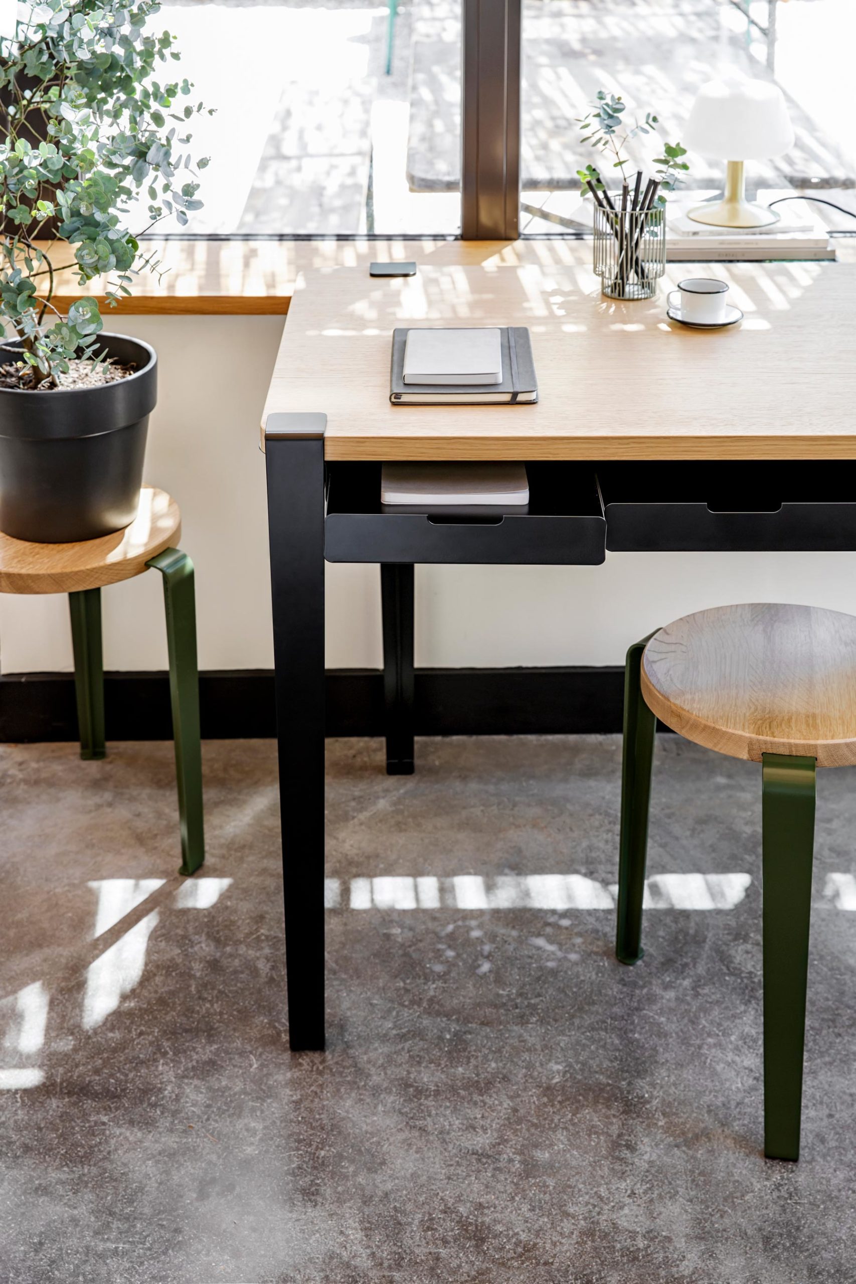 Vous avez besoin d’un bureau? Adaptez les tiroirs WAVE, disponibles en noir ou blanc avec le plateau 120 x 60 cm et les pieds TIPTOE 75 cm.Vous avez besoin d’un banc dans votre entrée, rien de plus facile avec le plateau en chêne de 120 x 30 cm monté sur des pieds TIPTOE de 43 cm.