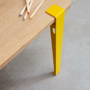 Il est disponible en plusieurs hauteurs: H75 cm pour tables et bureaux, H43 cm pour table basse et banc, H90 cm ou 110 cm pour table haute.