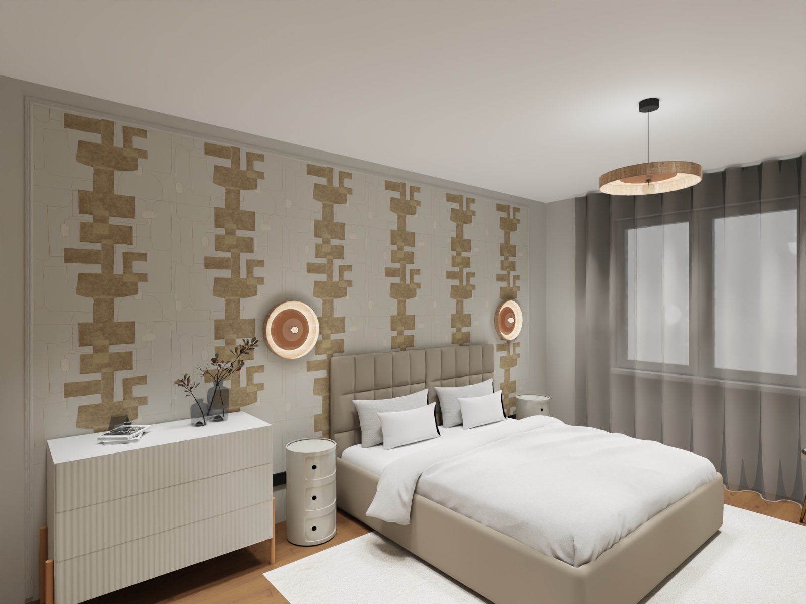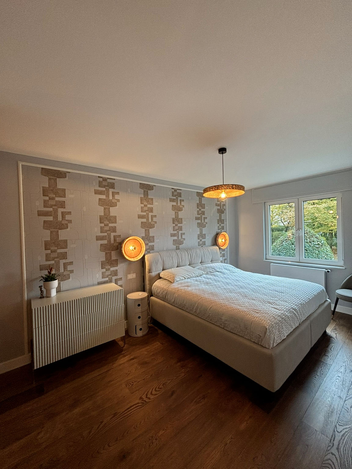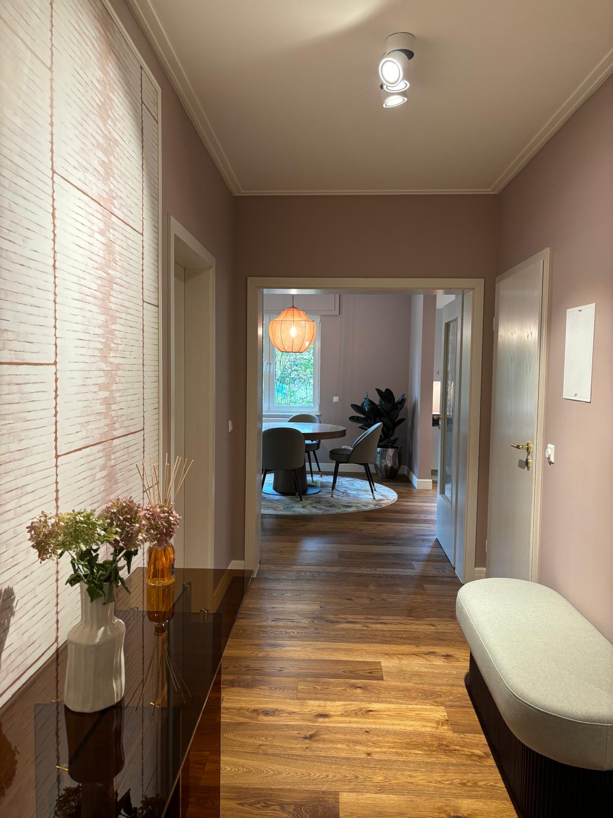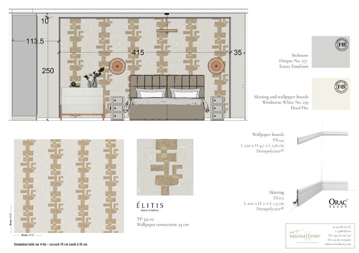 Une harmonie de couleurs douces mais distinctives est associée à des papiers peints. L’ambiance est chaleureuse et faite pour durer.