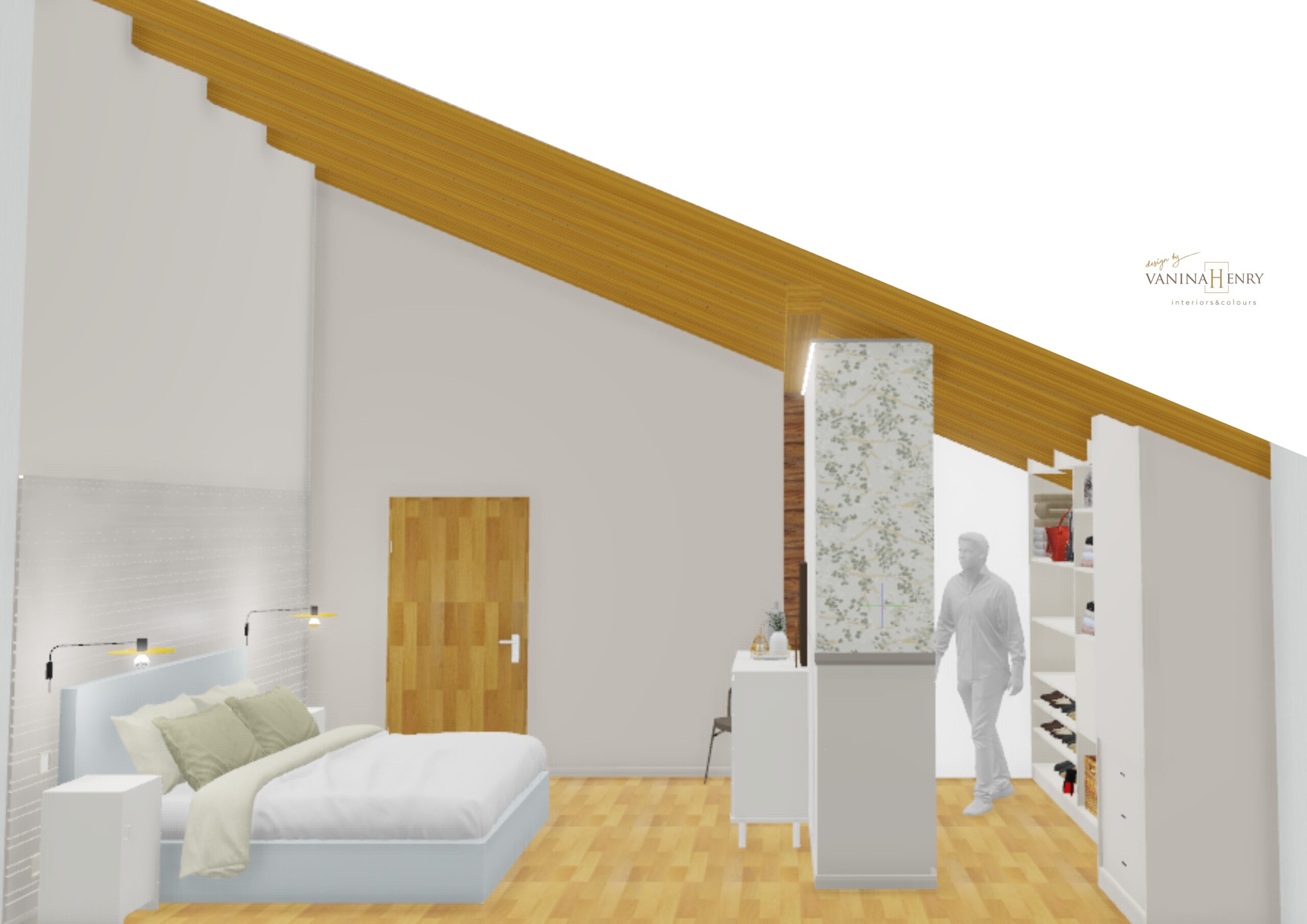 Dans ce projet, il s’agissait de refaire la chambre à coucher avec ses hauts plafonds afin d’y ajouter un dressing