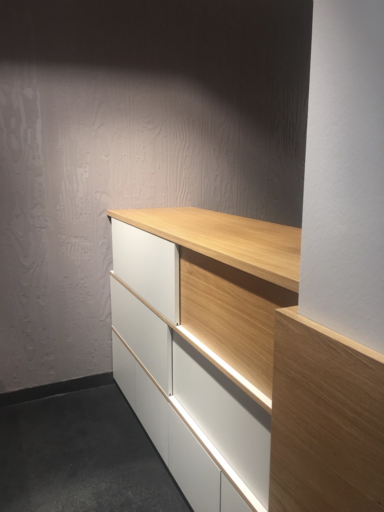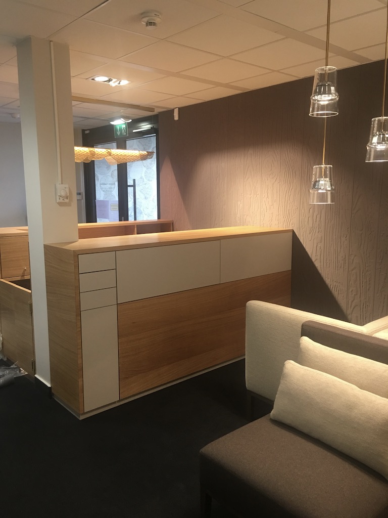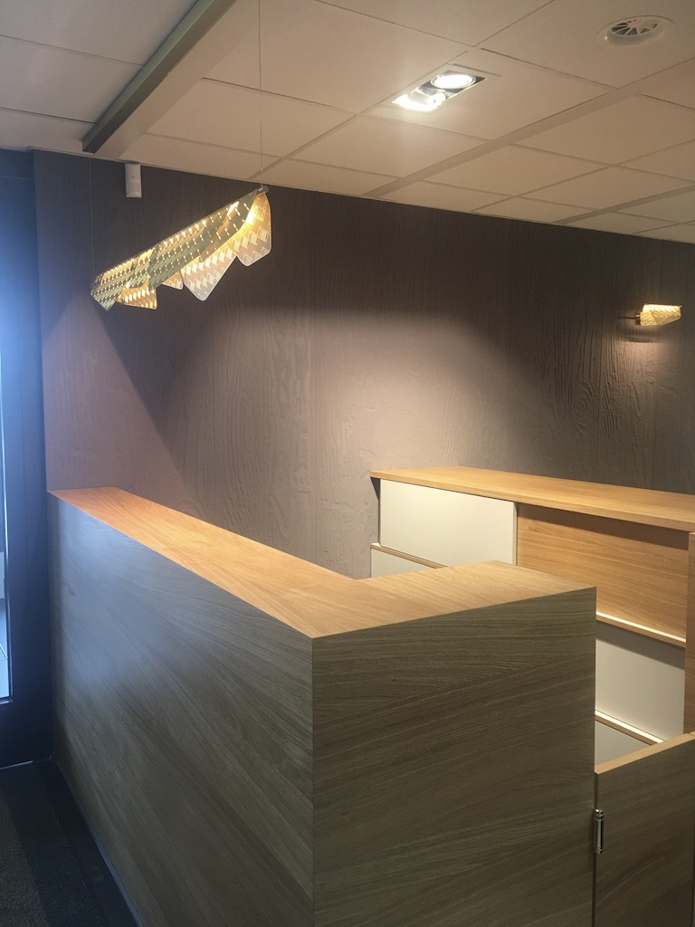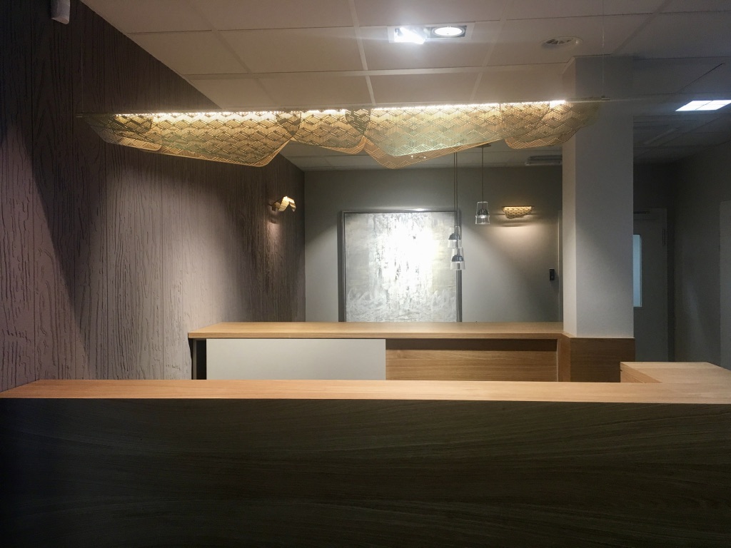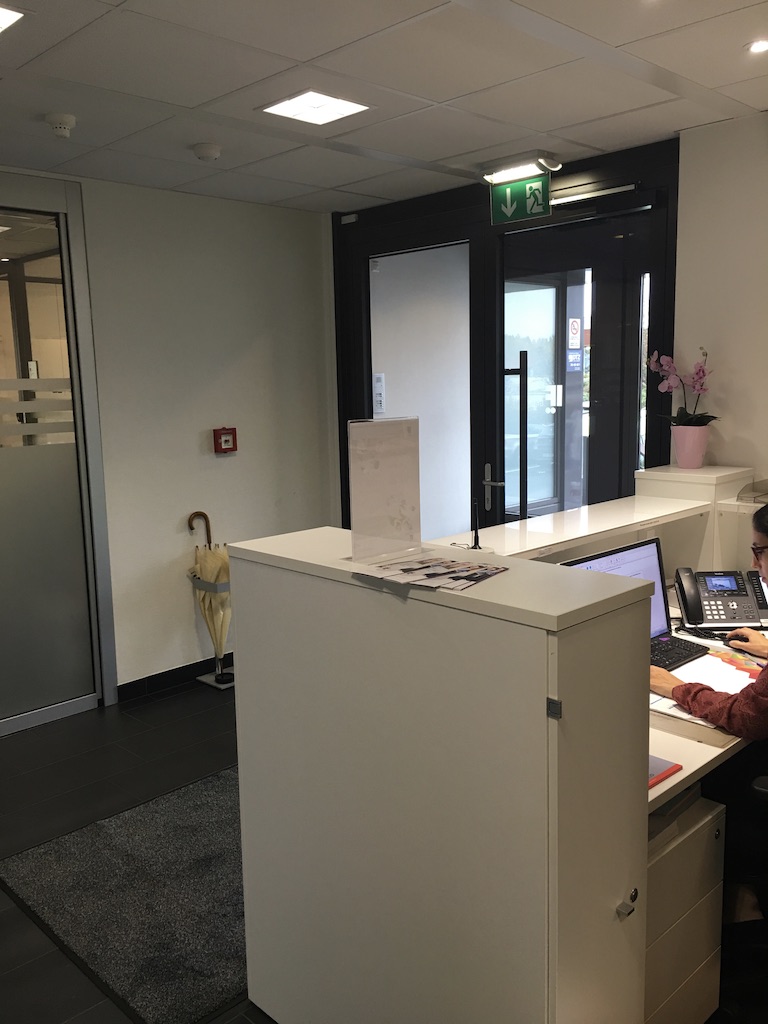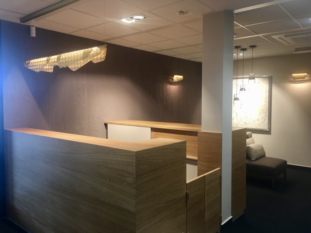 Dans ce projet il s’agissait de donner le bon ton, celui qui accueillera les clients. L’agencement a été repensé et nous avons redessiné le bureau de la réception en partenariat avec un excellent menuisier du Luxembourg, Norbert Brakonier SA.