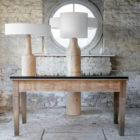 BELLE est d’une rare très rare élégance. Ses textiles sont d’une blancheur nuancée par la matière utilisée et cette couronne en dit trop sur la pureté de ses intentions. Vous séduire est pour elle banal. Ce chêne, matière éternelle et virile en diable, tournée vers MORANDI est le seul “ support “ qui lui sied. Elle sera chez vous une présence à la fois forte et lumineuse.