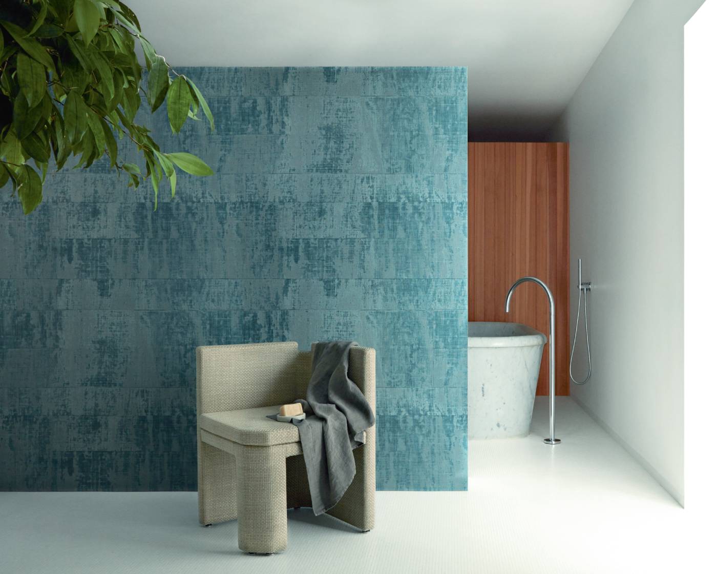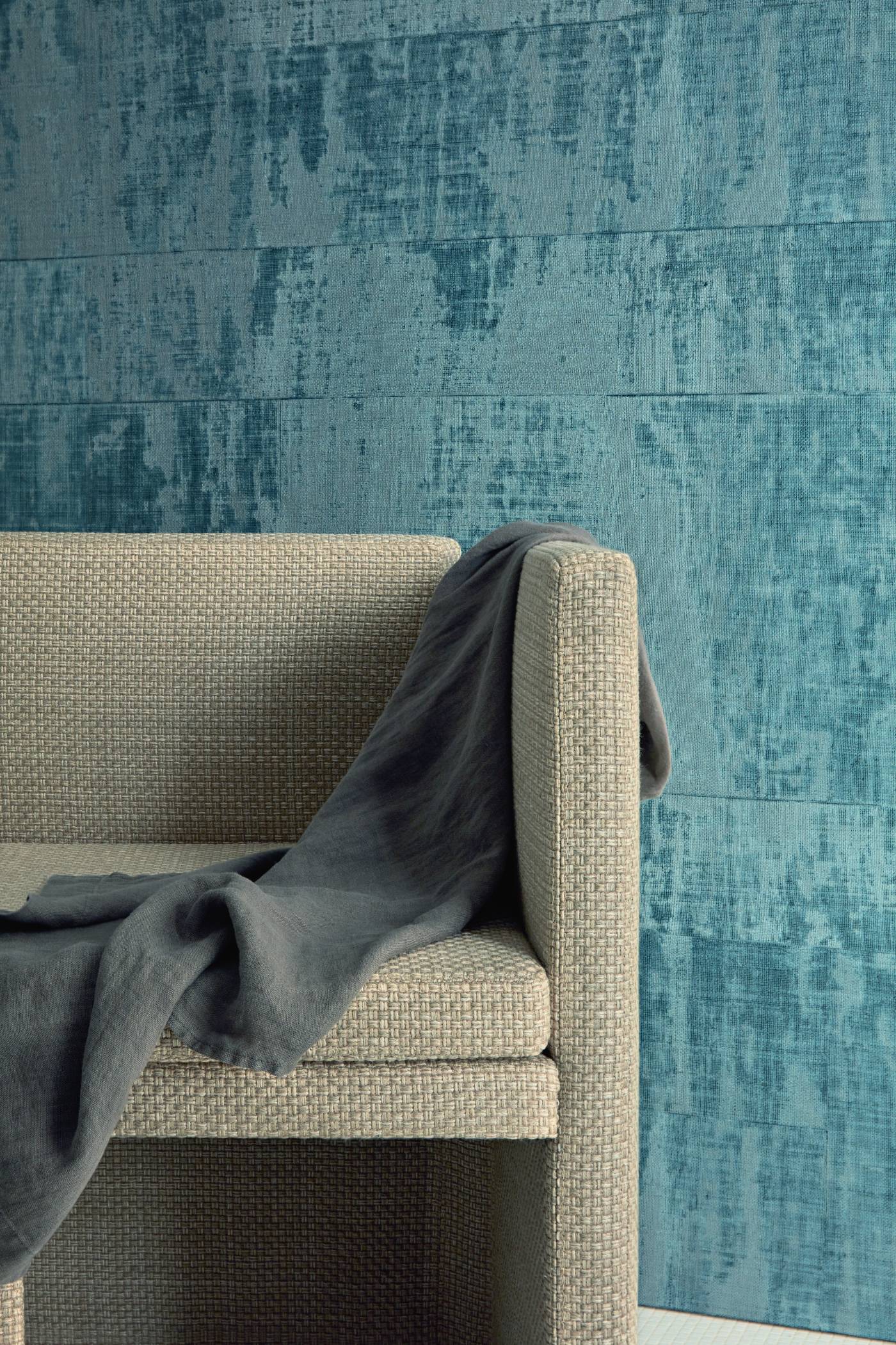 Papier peint vinyle gaufré à l’aspect de tissage de rafia.