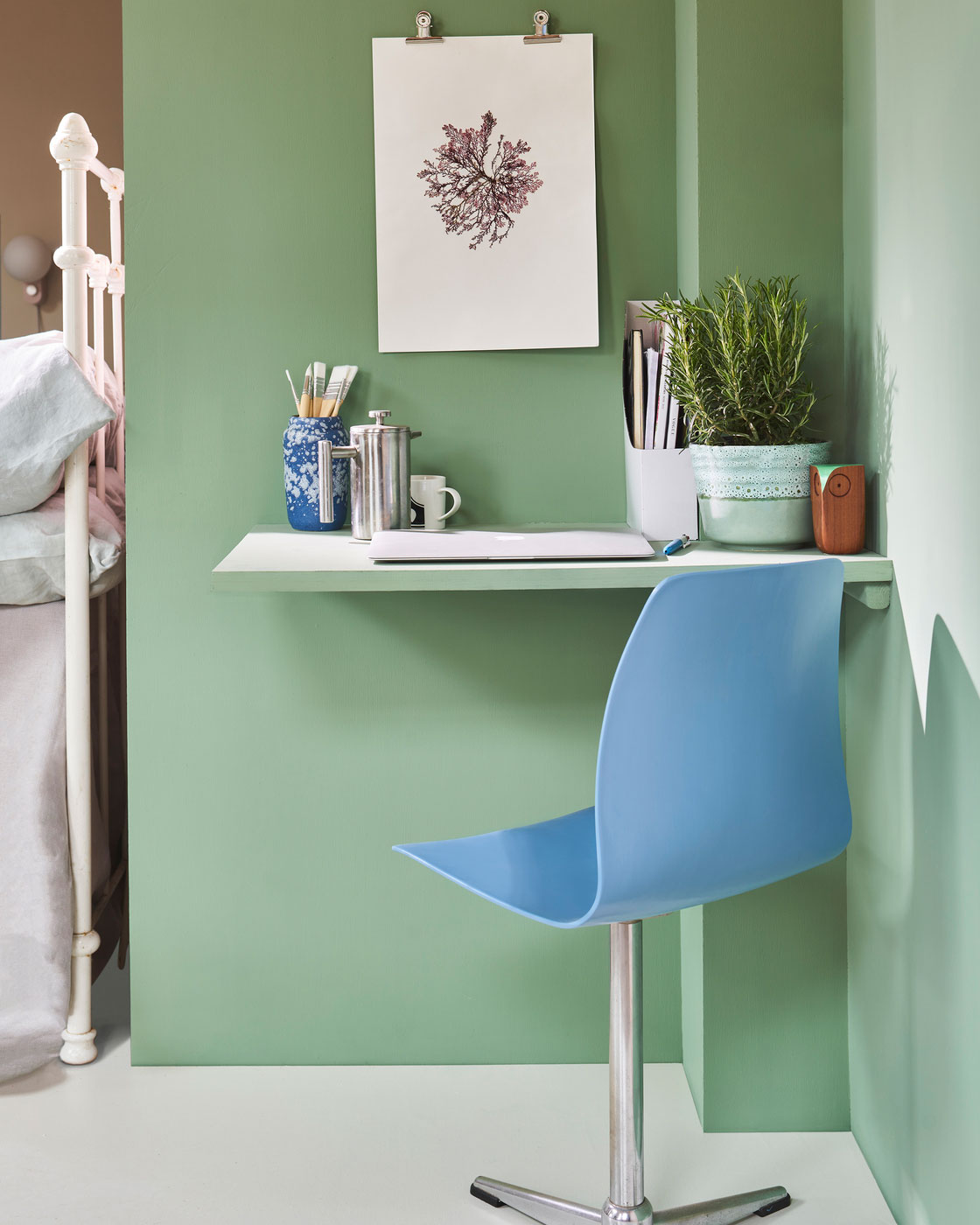 Breakfast Room Green est le plus joyeux de tous nos verts, c’est une couleur vivante : de jour, comme à la lumière plus douce des chandelles. Tenant son nom des pièces généralement orientées à l’est où l’on servait le premier repas de la journée, ce vert est particulièrement magnifique à la lumière de l’aube. Il est d’une beauté particulière lorsqu’il est utilisé seul à la fois sur les murs et les boiseries.