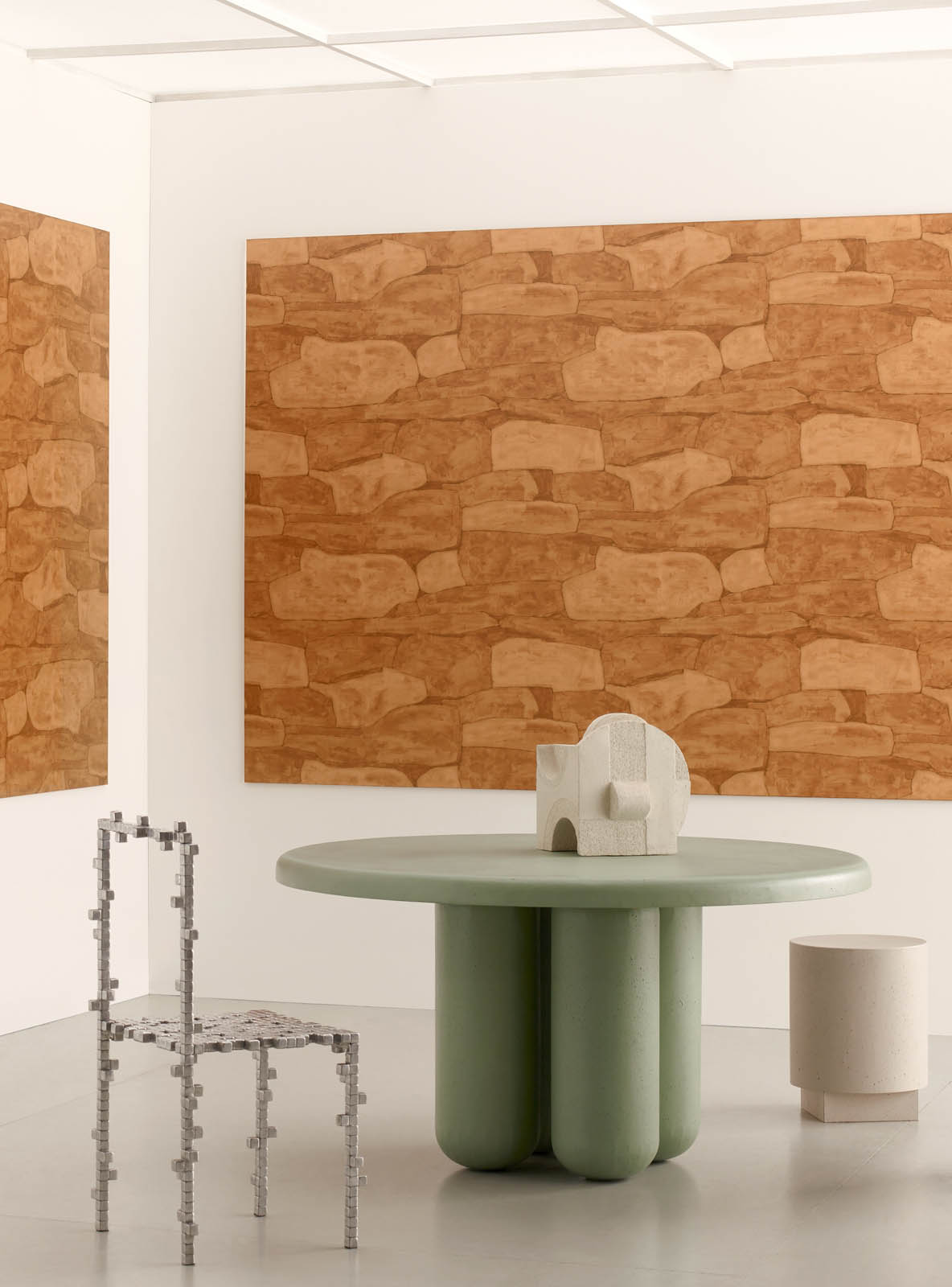 Description: Dessins géométriques sur intissé.