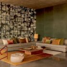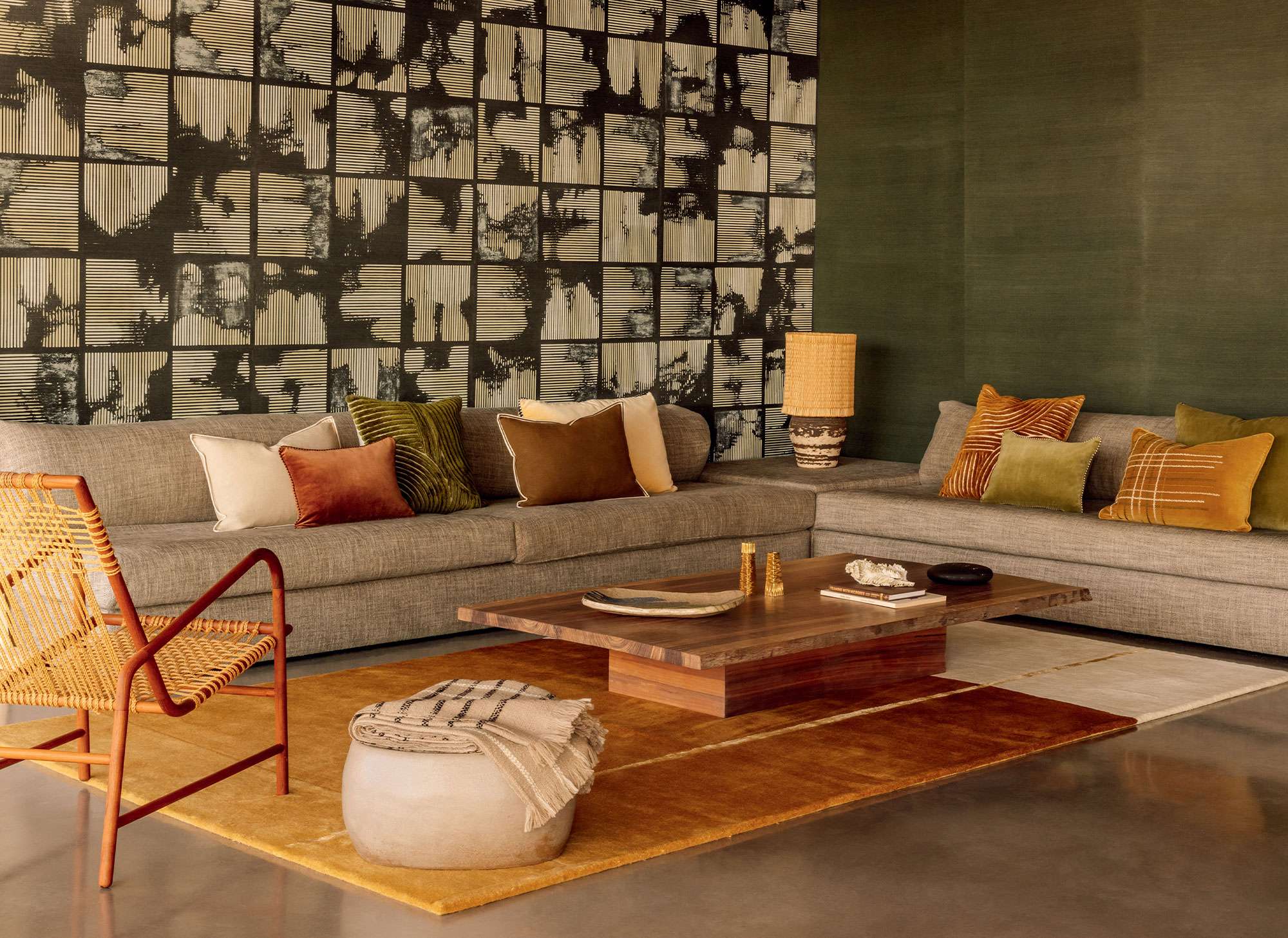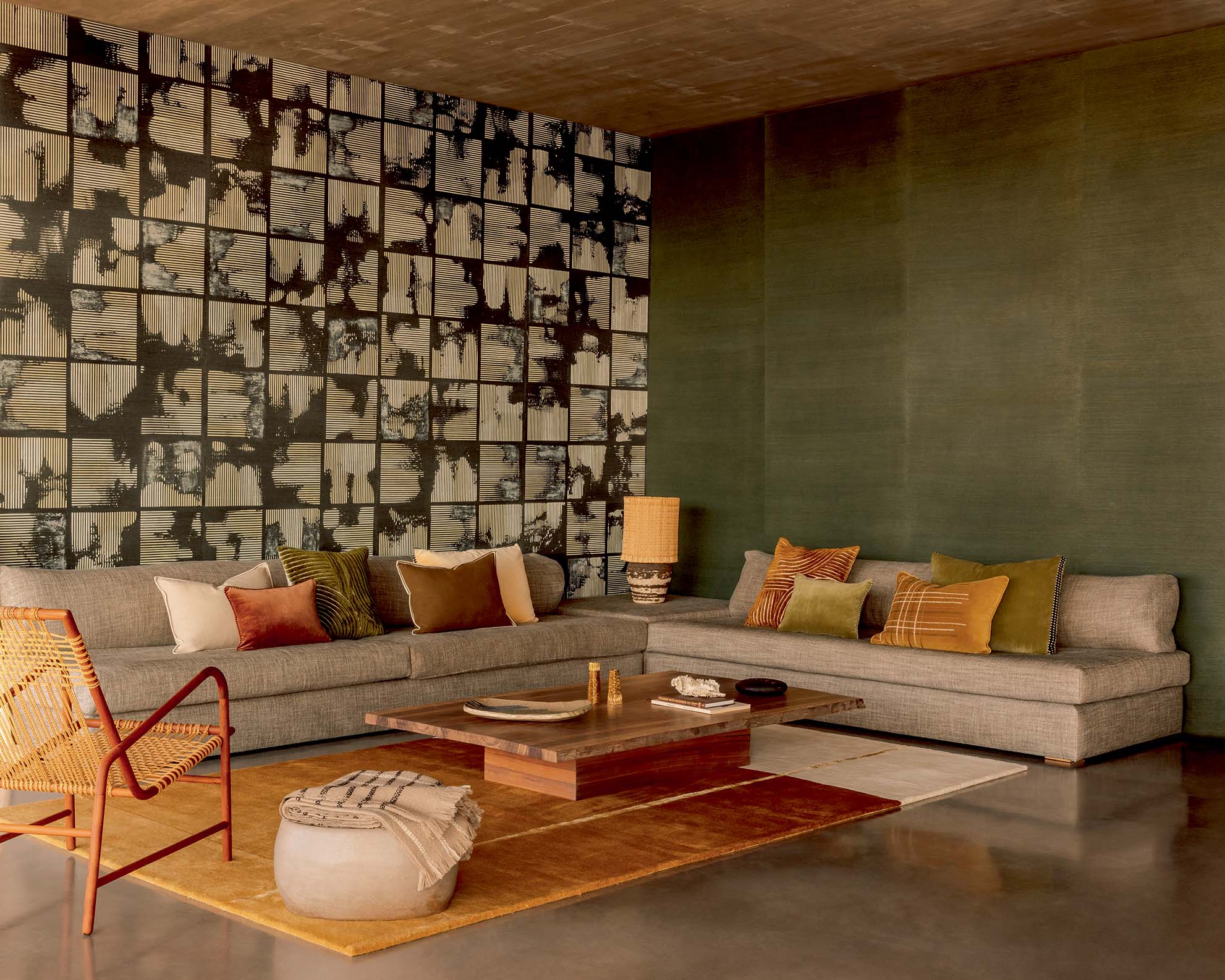 Velouté et brillance subtile de ces paysages graphiques en laine tuftée.