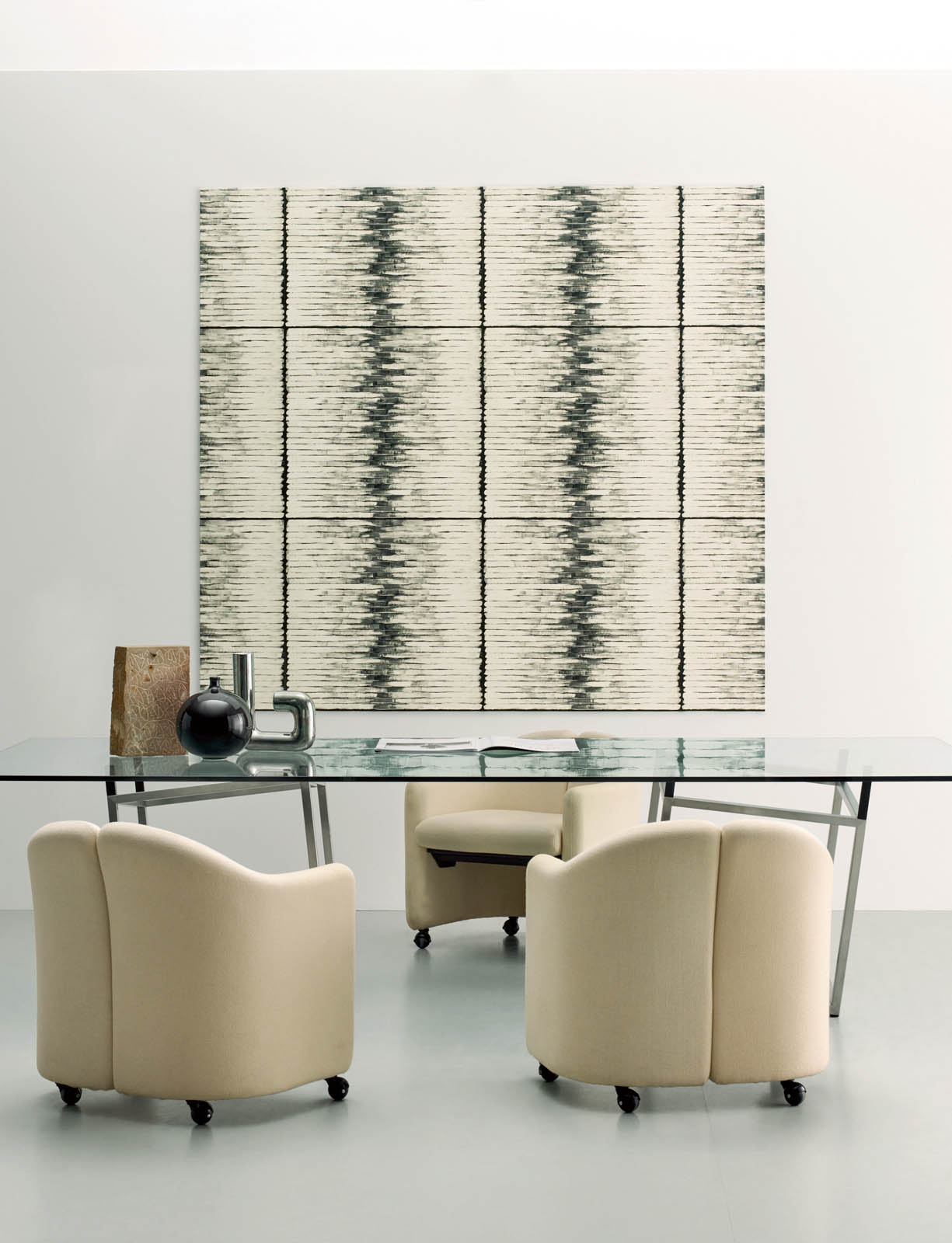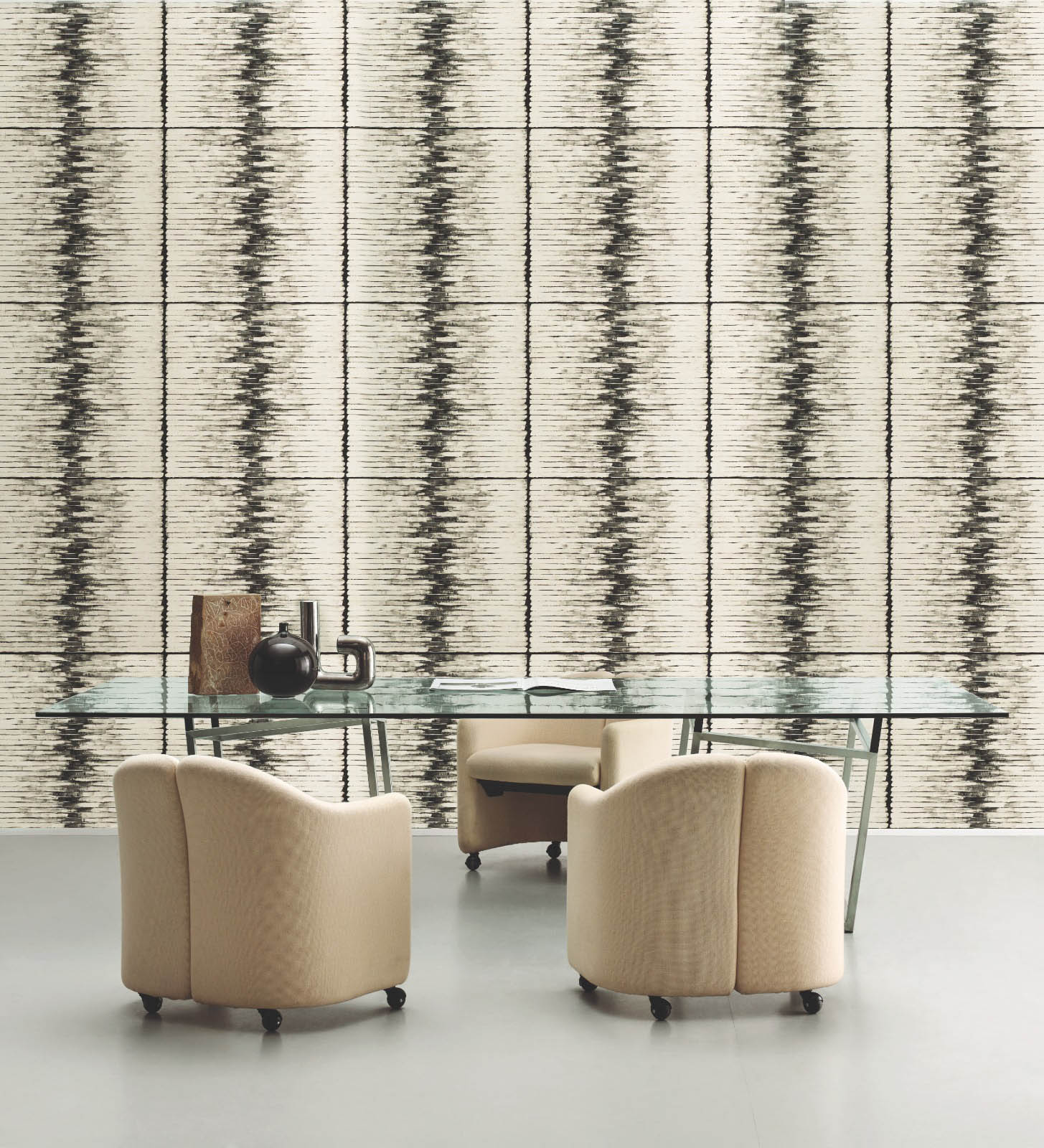 Description: Dessins géométriques sur intissé.