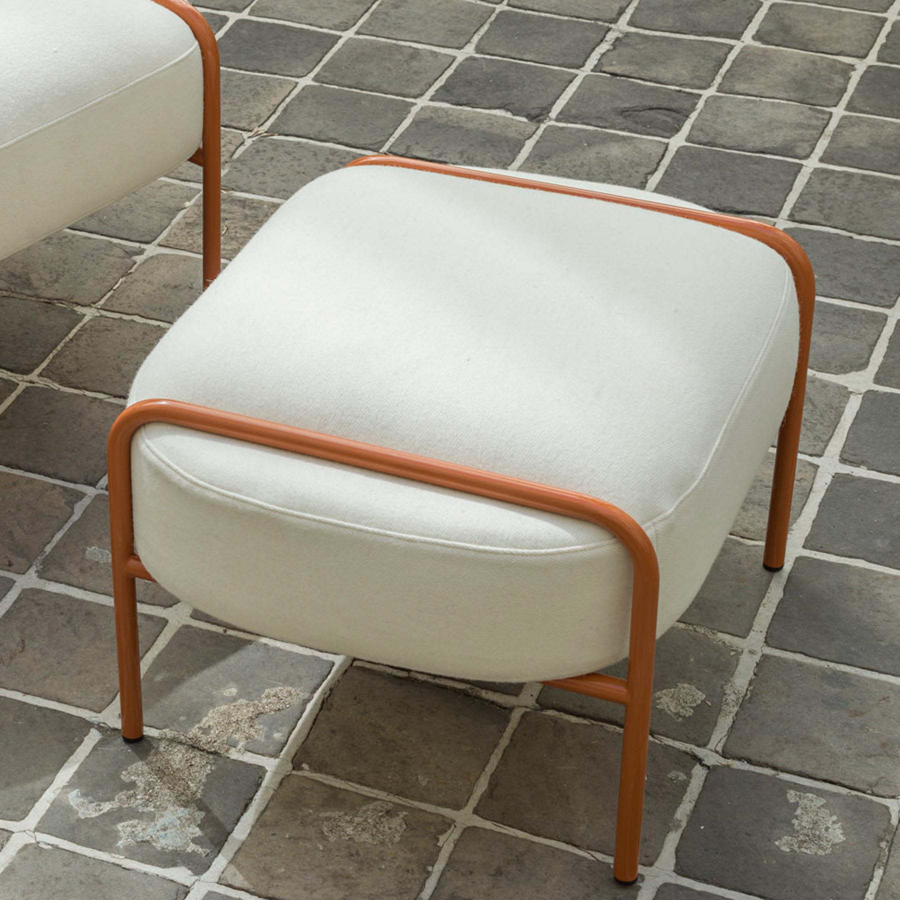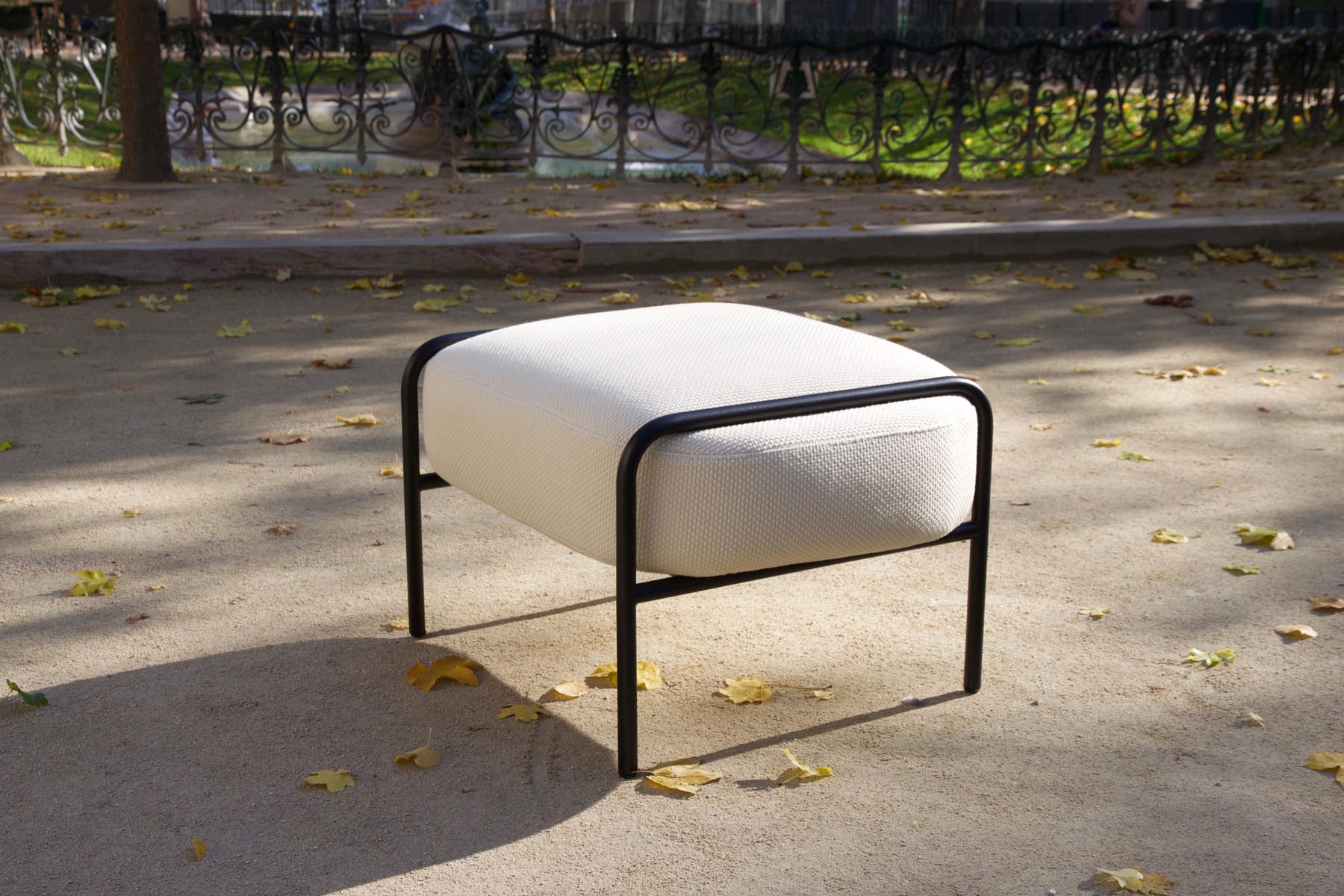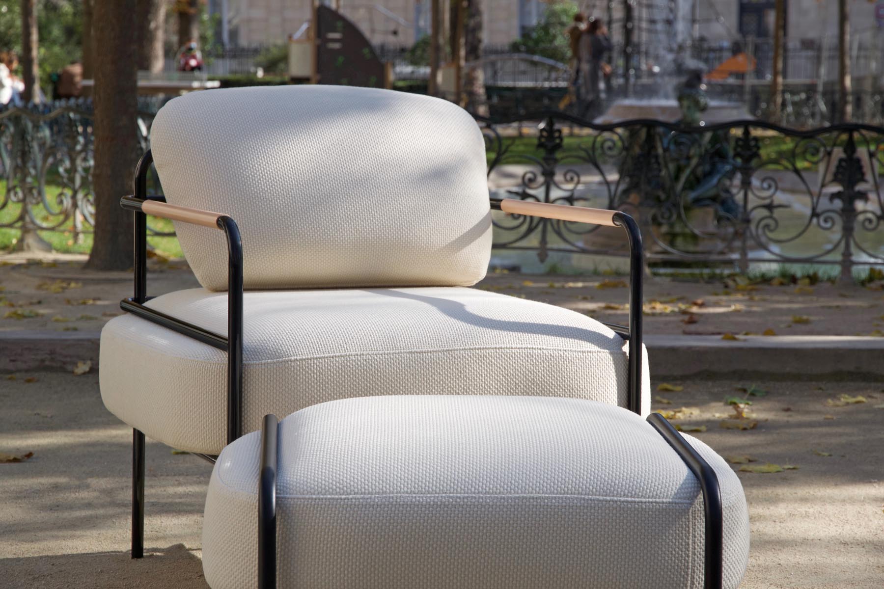« De prime abord, Laime ne relève pas le pari du recyclage. Travaillé autour du coussin d’assise, le fauteuil Laime est composé d’une structure en acier tubulaire sur lequel le dossier vient se poser. L’assise déborde de la structure et semble glisser entre les tubes de métal. Un effet pincé donne une générosité à l’ensemble. »