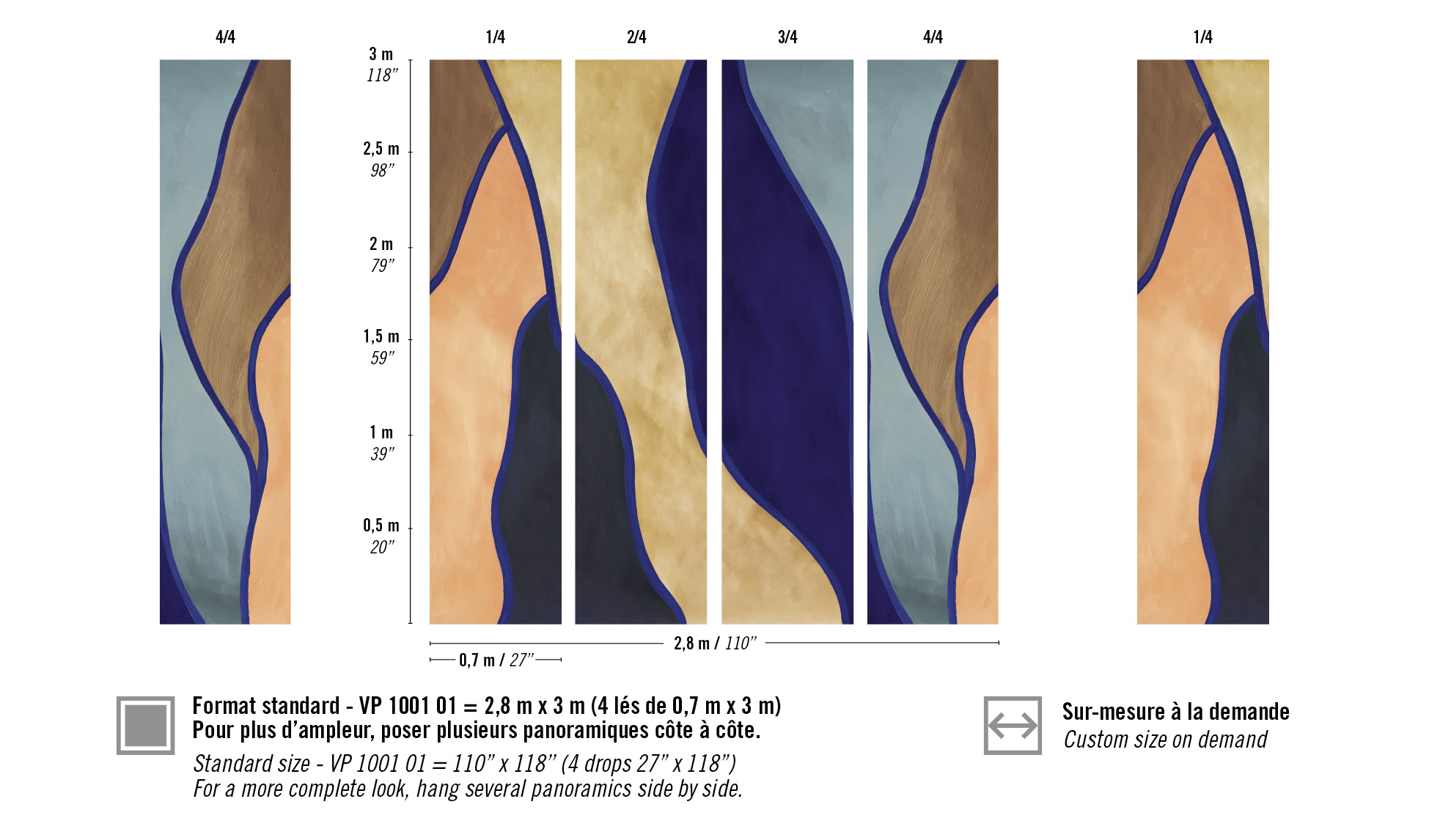 Dimensions: Standard en 2,8 m x 3 m disponible en 4 lés de 0,7 m ou Sur mesure