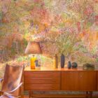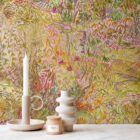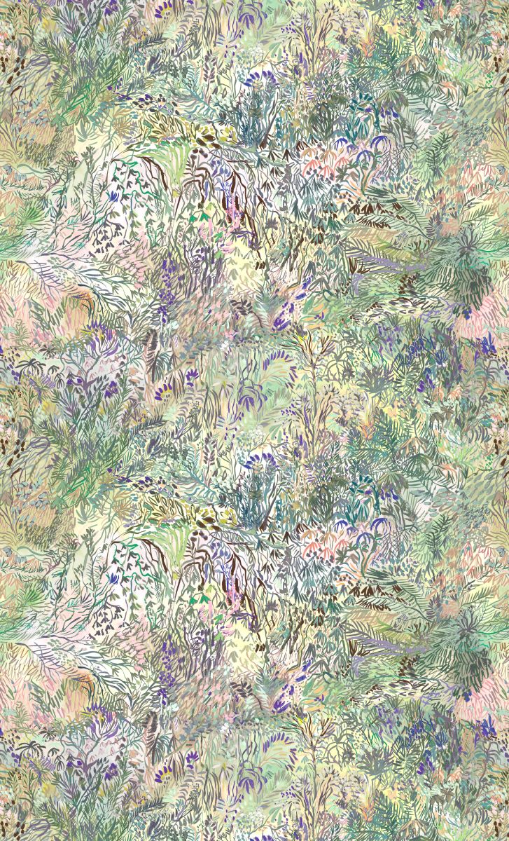 Le panoramique a été réalisé à partir d’une série de grandes gouaches, mi-figuratives mi-abstraites, inspirées d’un jardin botanique dans une région montagneuse d’Italie.