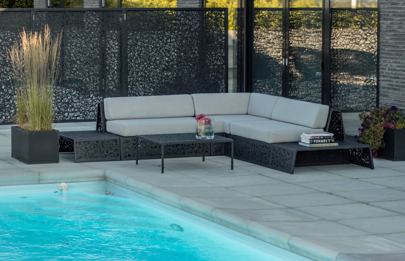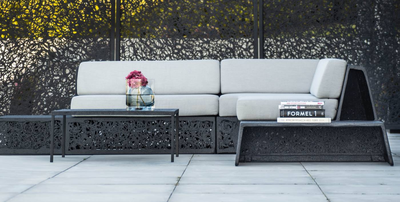 Le mobilier encapsule la chaleur, c’est pourquoi – malgré sa couleur noire – il ne devient pas trop chaud au soleil.