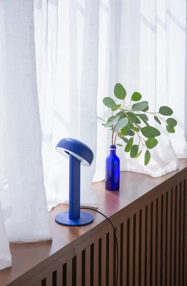 La lampe NOD à poser possède un variateur d’intensité à réglage progressif. Vous pouvez créer différentes ambiances de lumière au fil de la journée.