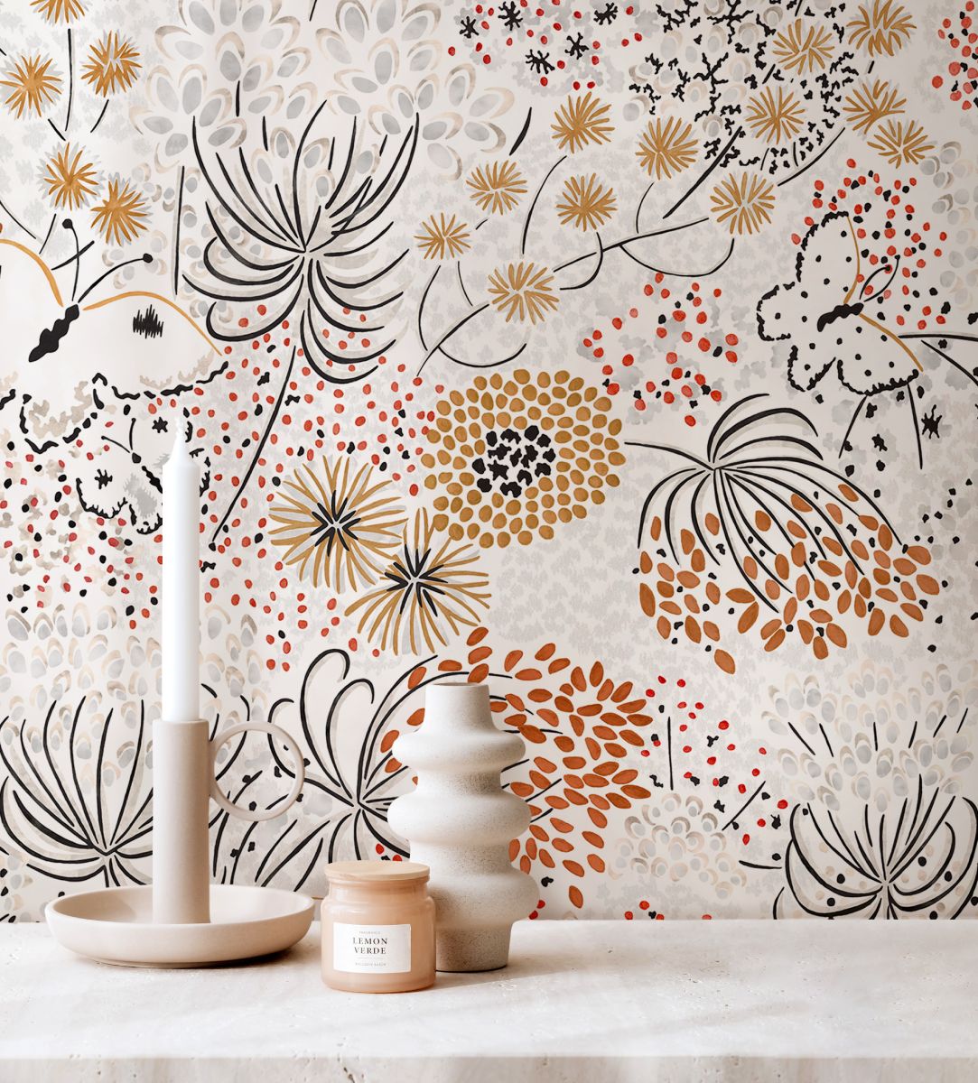Ce modèle est issu d’une collaboration avec Jeanne De Marguerye et l’Abbaye d’En Calcat, et d’une adaptation contemporaine de l’œuvre Ombelles de Dom Robert en décor panoramique, redessiné à la main par Francesco Battista.