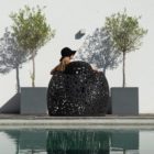 Le mobilier est réalisé en basalte volcanique et en résine.