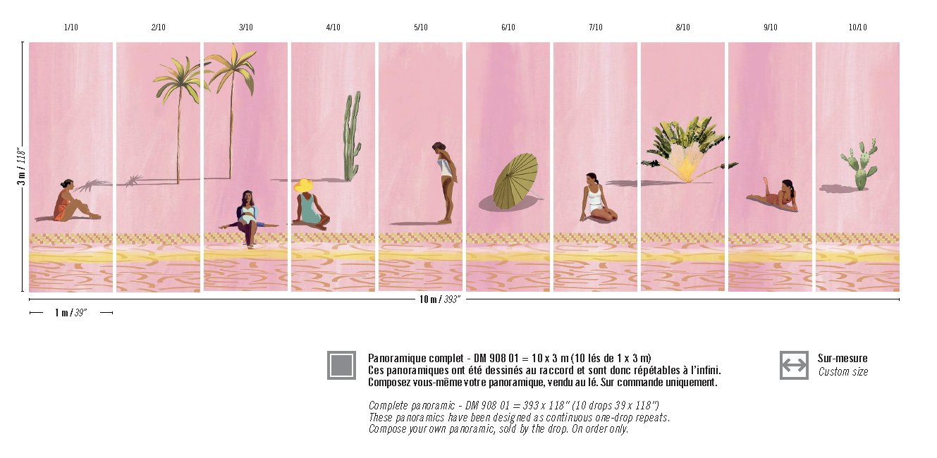 Dimensions: Standard en 11m (large) x 3m (haut) disponible en 10 lés de 1m ou Sur mesure. Contactez-nous pour plus d’informations.